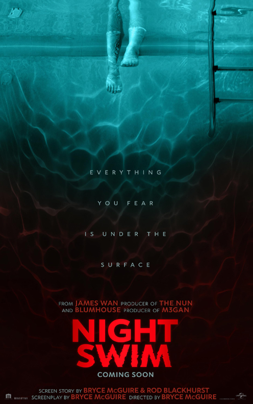NIGHT SWIM is written and directed by Bryce McGuire (writer of the upcoming film Baghead) and is produced by James Wan, the filmmaker behind the SAW, INSIDIOUS and THE CONJURING franchises, and Jason Blum, the producer of the Halloween films, The Black Phone and THE INVISIBLE MAN. The film is executive produced by Michael Clear and Judson Scott for Wan’s ATOMIC MONSTER and by Ryan Turek for Blum’s Blumhouse.