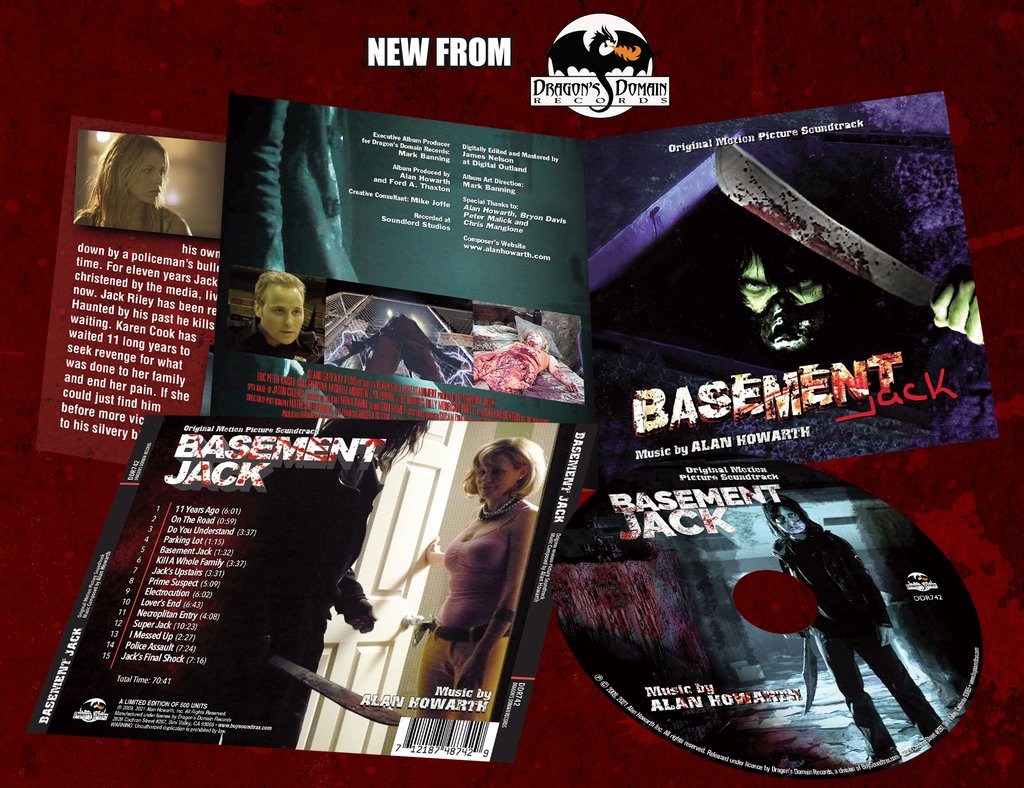 2009’s BASEMENT JACK features the music composed and performed by Alan Howarth for the 2009 horror film directed by Michael Shelton and starring Eric Peter-Kaiser, Sam Skoryna, Michele Morrow, and Tiffany Shepis. The film follows killer Jack Riley, dubbed Basement Jack because of his penchant for hiding out in the basements of his victims, who has been released from the state asylum. Surprise: he hasn’t been cured and soon starts to kill again.