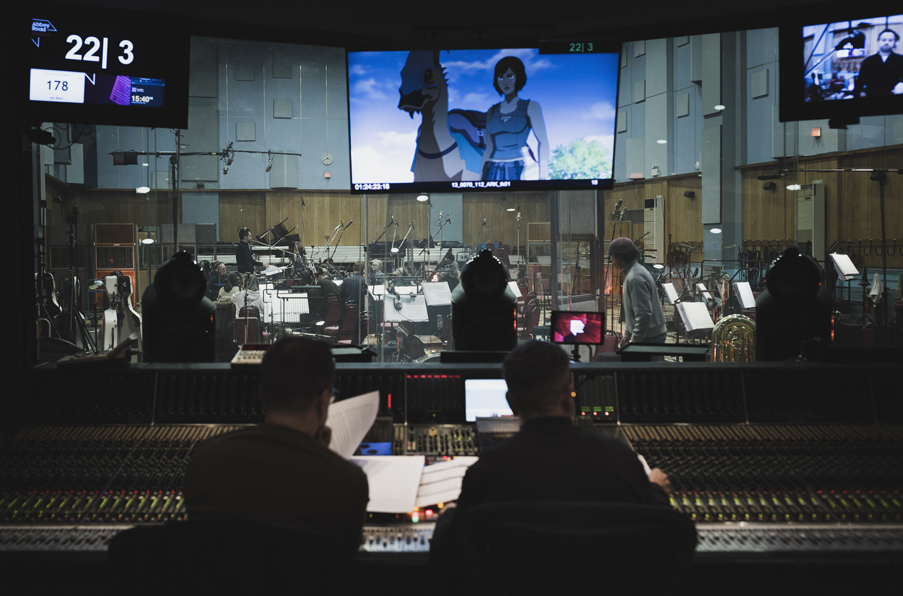 So the first time I turned up, it was fifty strings and then between 20 and 26 brass for the entire show. One of the things I’m most proud of was that we were able to get the same musicians for every single episode. We worked hard to ensure that, and, as I said, I think the orchestra grew with the project as well because, by the end, they knew all the themes because I was telling them the story as we were recording each musical cue, they understood precisely what they had to do. “Oh, it’s Nerva’s theme; we need to play in this style, or it’s Helena’s theme; we need to play in this style.” They got the musical vocabulary, as well, by the end. Being able to grow with a bunch of musicians who have played on literally every major film soundtrack over the last decade or two, it was quite flattering and humbling just to be able to hear my music being played by them. In that room, especially for loud action music, I think that room is, arguably, the best in the world, or one of the best, for sure. I’ll be forever grateful to the ARK team for just letting me do that because I think it’s unprecedented to have that much music be recorded live because, between the first part and the second, it’s about seven hours of music in total, which is a lot for a single project, and especially for an animation. Obviously, we did have a reasonable budget because we wouldn’t have been able to get all those actors as well, but it’s still unprecedented – and it’s an obvious place where they could have made a shortcut. I’m very glad they didn’t because it allowed me to write the music in a way where I knew it was being recorded by a top orchestra with people I’ve worked with for years, so I’d know what the end result is. Thankfully, the CEOs know the difference between hearing a digital mock-up and hearing the final. The best quote I got from the people in charge was, “Yeah, we’re never doing anything, not live again!”